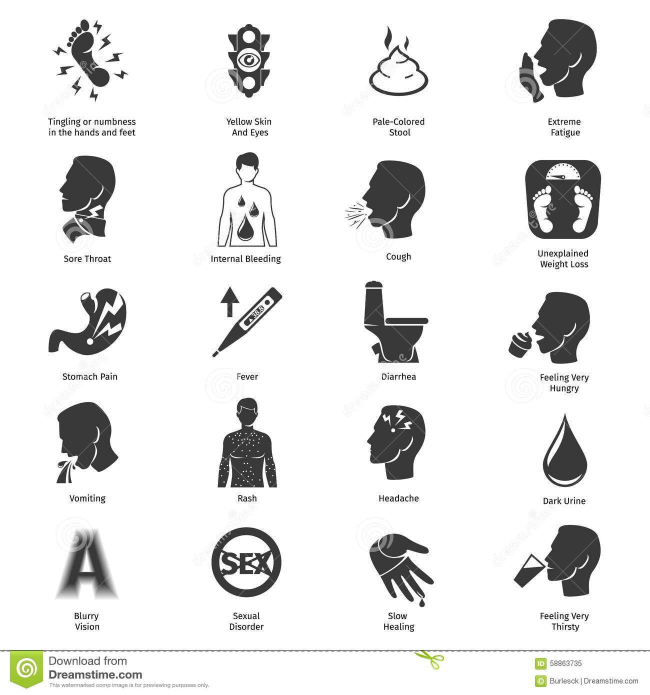 Symptom clipart: Common symptoms vector icons