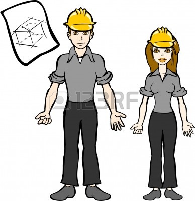 Female engineer clipart: construction woman : Architech