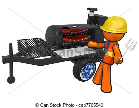 Smoker clipart: Contractor with BBQ Smoker