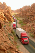 Convoy clipart: Convoy of semi-trucks driving