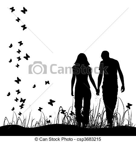 Couple clipart: Couple on meadow, black
