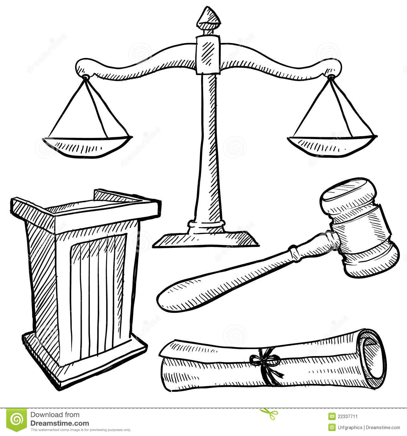 Courtroom clipart: Courtroom objects sketch