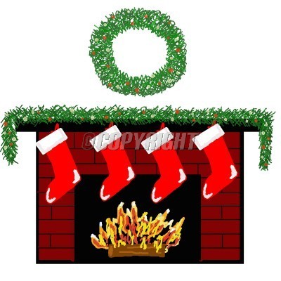 Cartoon christmas fireplace: cozy fireplace decorated
