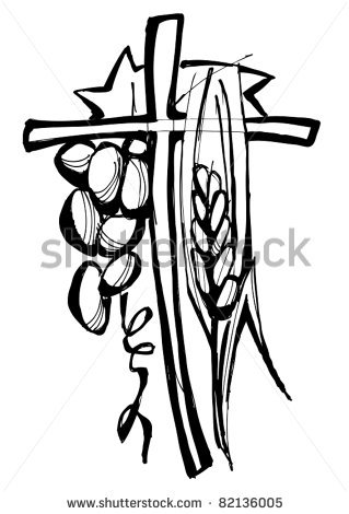 Catholic cross drawing: cross grapes and corn .