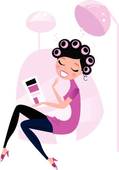 Hair salon clipart black and white: Cute beauty Woman in pink Hair