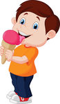 Ice cream cart clip art: Cute boy cartoon licking ice