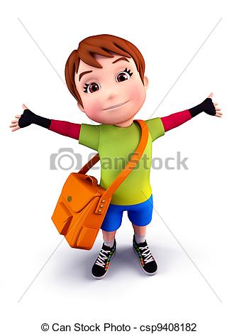 Cute school clip art: Cute boy with school bag -