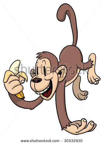 Monkey banana cartoon: Cute cartoon monkey holding a