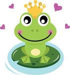 Cute frog clipart: Cute Frog prince with hearts -