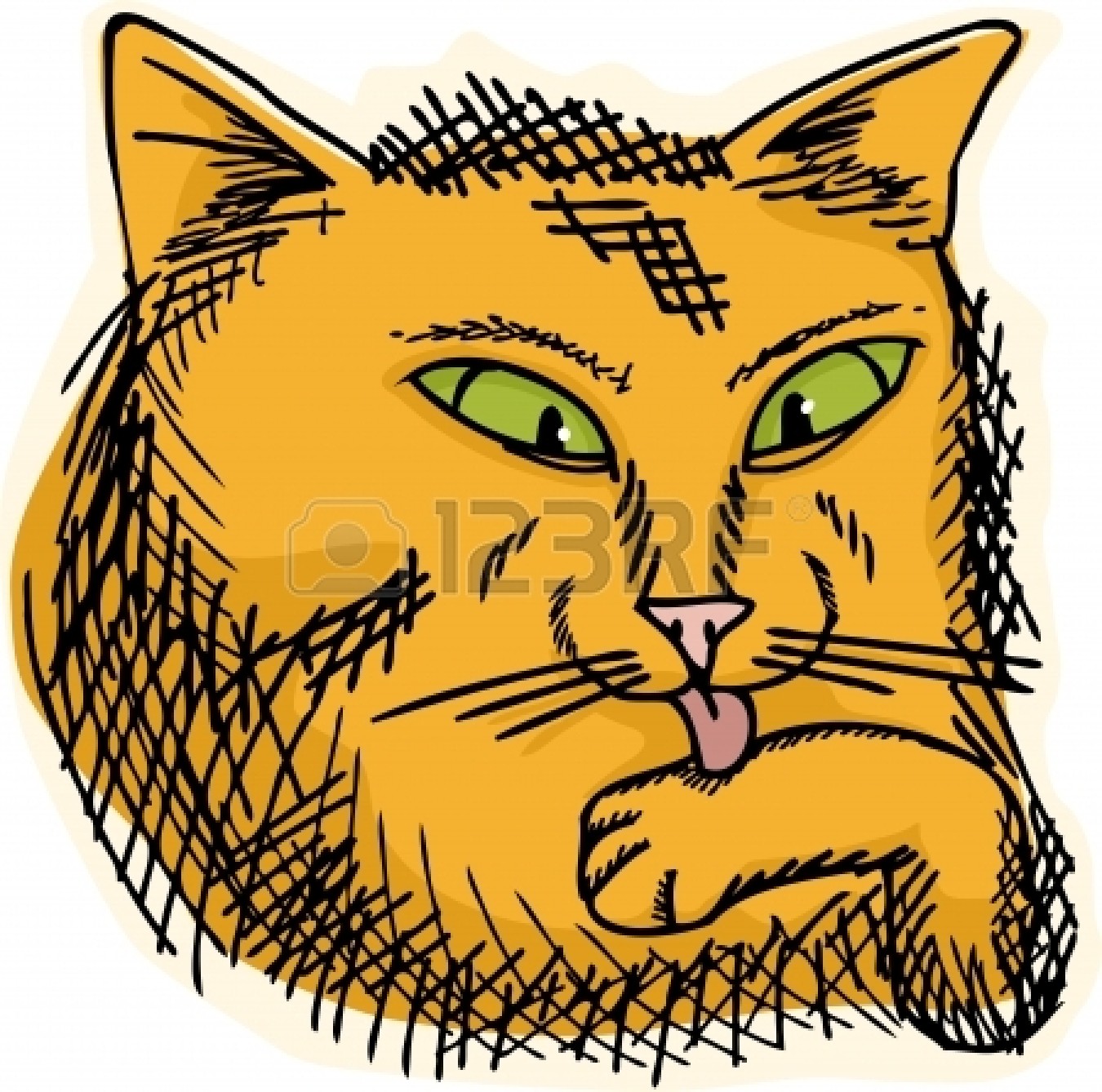 Cute house illustration: Cute house cat licking his paw