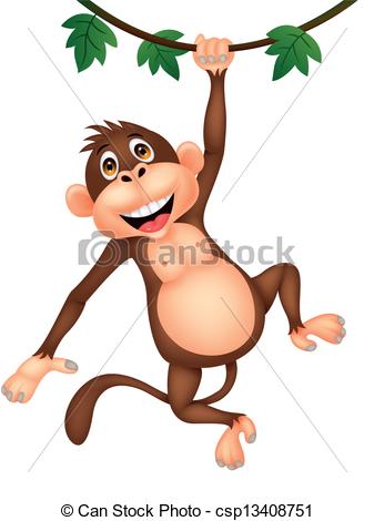 Hanging monkey clipart: Cute monkey cartoon hanging -