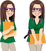 Female college student clipart: Cute Nerdy Girl Student