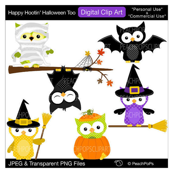 Cute halloween owl clip art: cute owls clip art digital