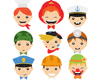 Profession clipart: Cute Profession Boy Faces