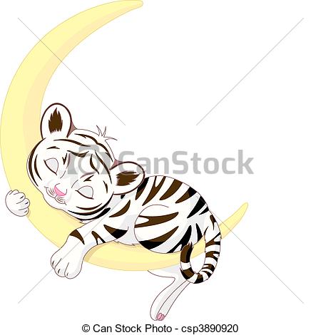 Sleeping moon clipart black and white: Cute white tiger cub sleeping