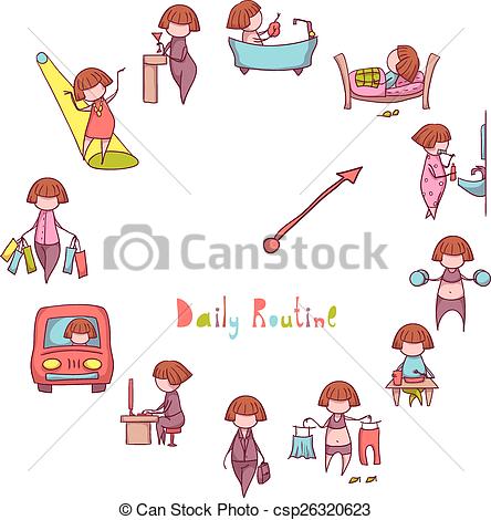 Routine clipart: Daily Routine Vector set with