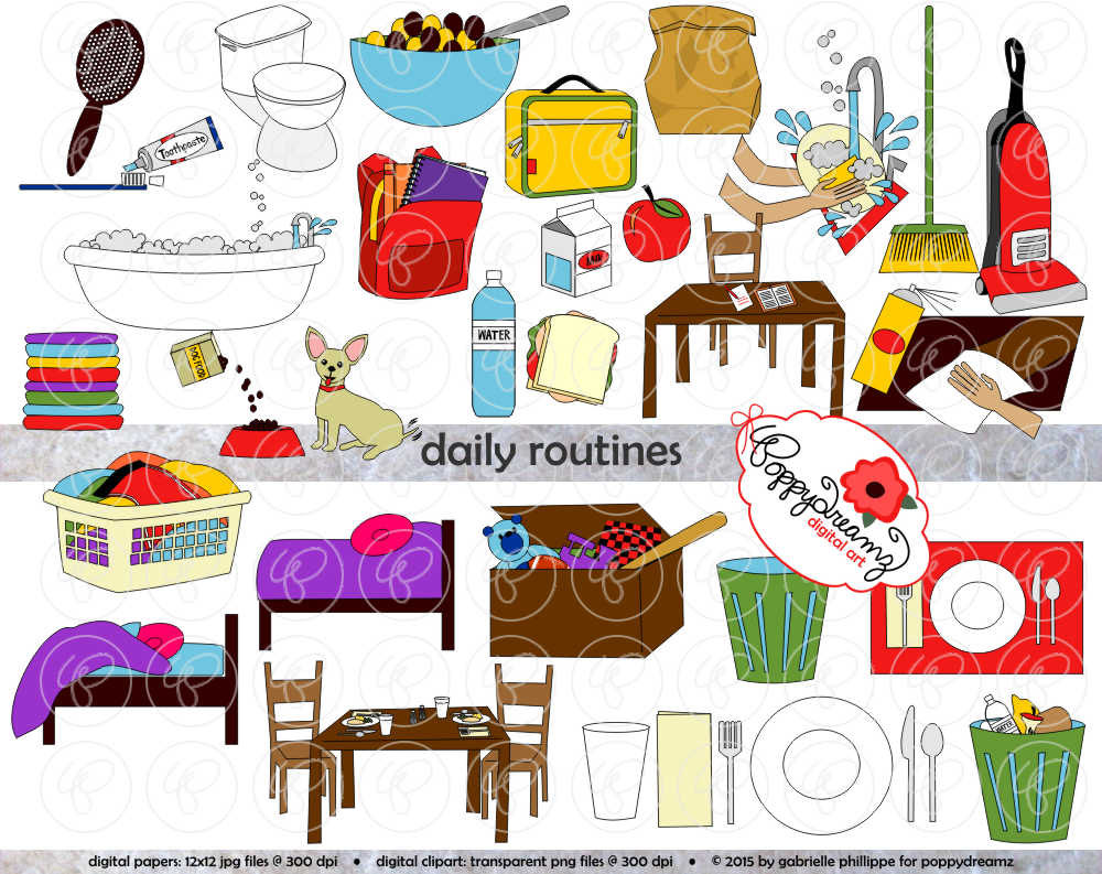 Routine clipart: Daily Routines Clipart: (300