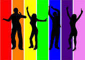 Dance party background: Dancers in silhouette against