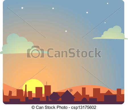 Dawn clipart: Dawn - View of a city scape at