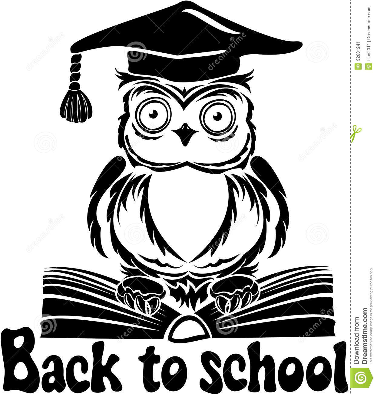 School owl clipart black and white: Decorative bird - owl with
