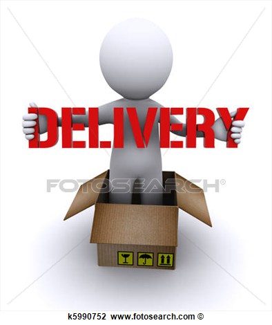 Retailer clipart: Delivery man holding "