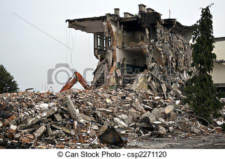 Debris clipart: Destroyed building, debris.