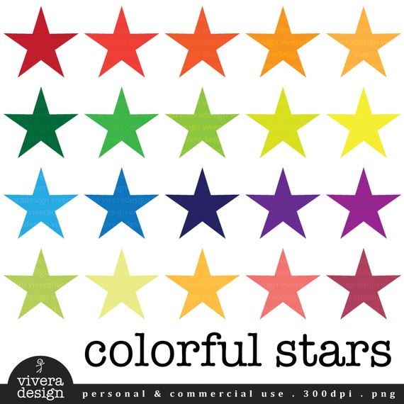 Colorful stars clipart: Digital Clip Art - 20 Colorful