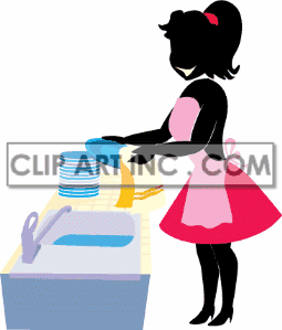Kitchen sink clipart: dishes kitchen female sink