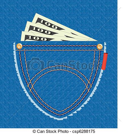 Pocket clipart: dollar banknotes in the pocket