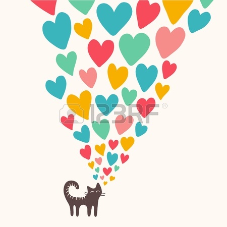 Two people in love drawings: drawing : Cute card with cat