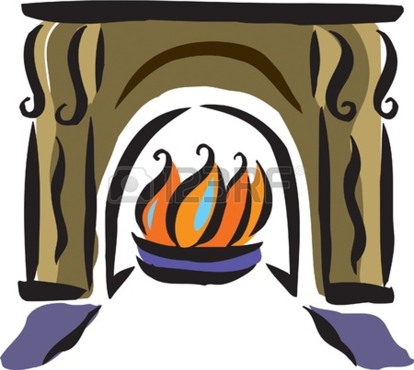 Fireplace drawing: Drawing of a fireplace Stock