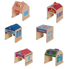 Police station building: Each plywood building has a
