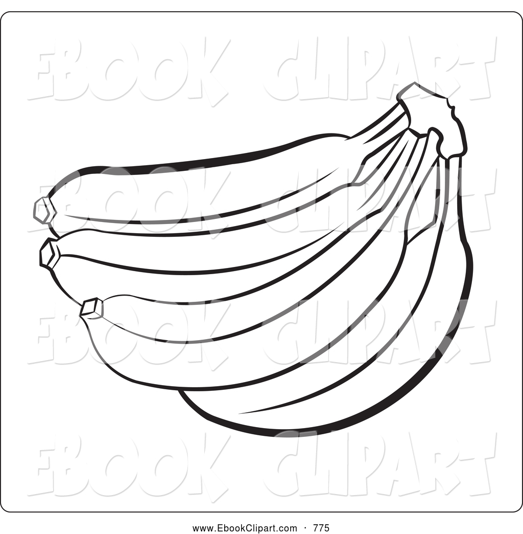 Banana clipart black and white: Ebook Clipart of Foods