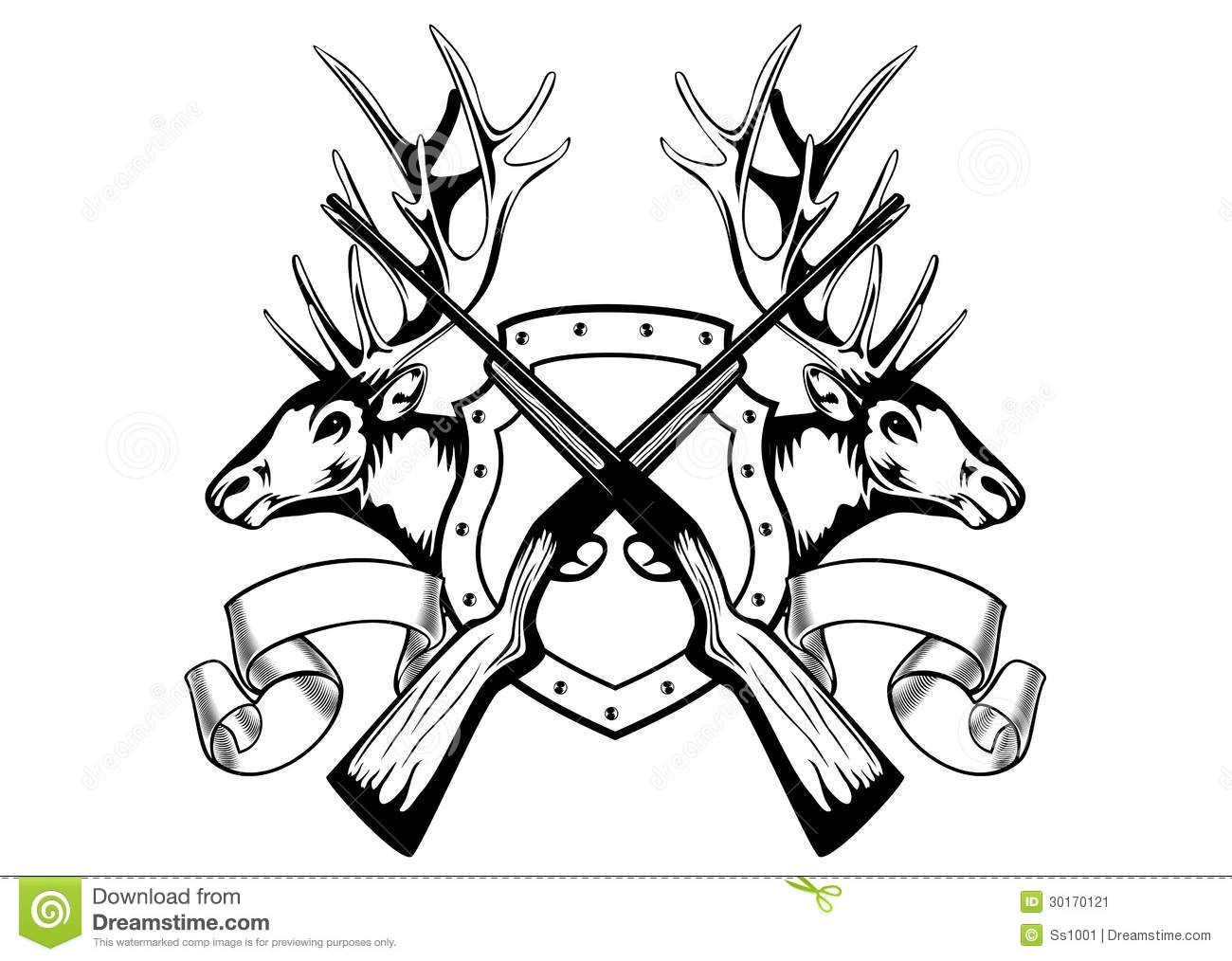 Crossed gun clipart: Elk heads and crossed rifle