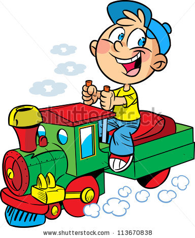 Train engineer cartoon: engineer a toy locomotive.