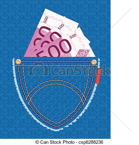 Pocket clipart: euro banknotes in the pocket -