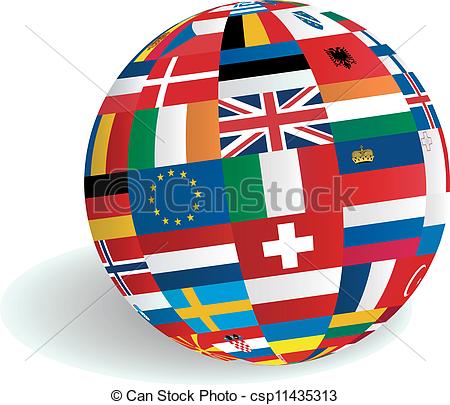 European clipart: European flags in globe sphere