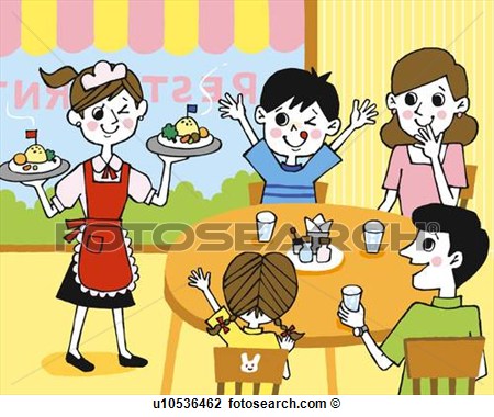 Restaurant clipart: Family at restaurant, Painting