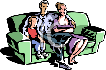 Family reading together clipart: Family Watching Television