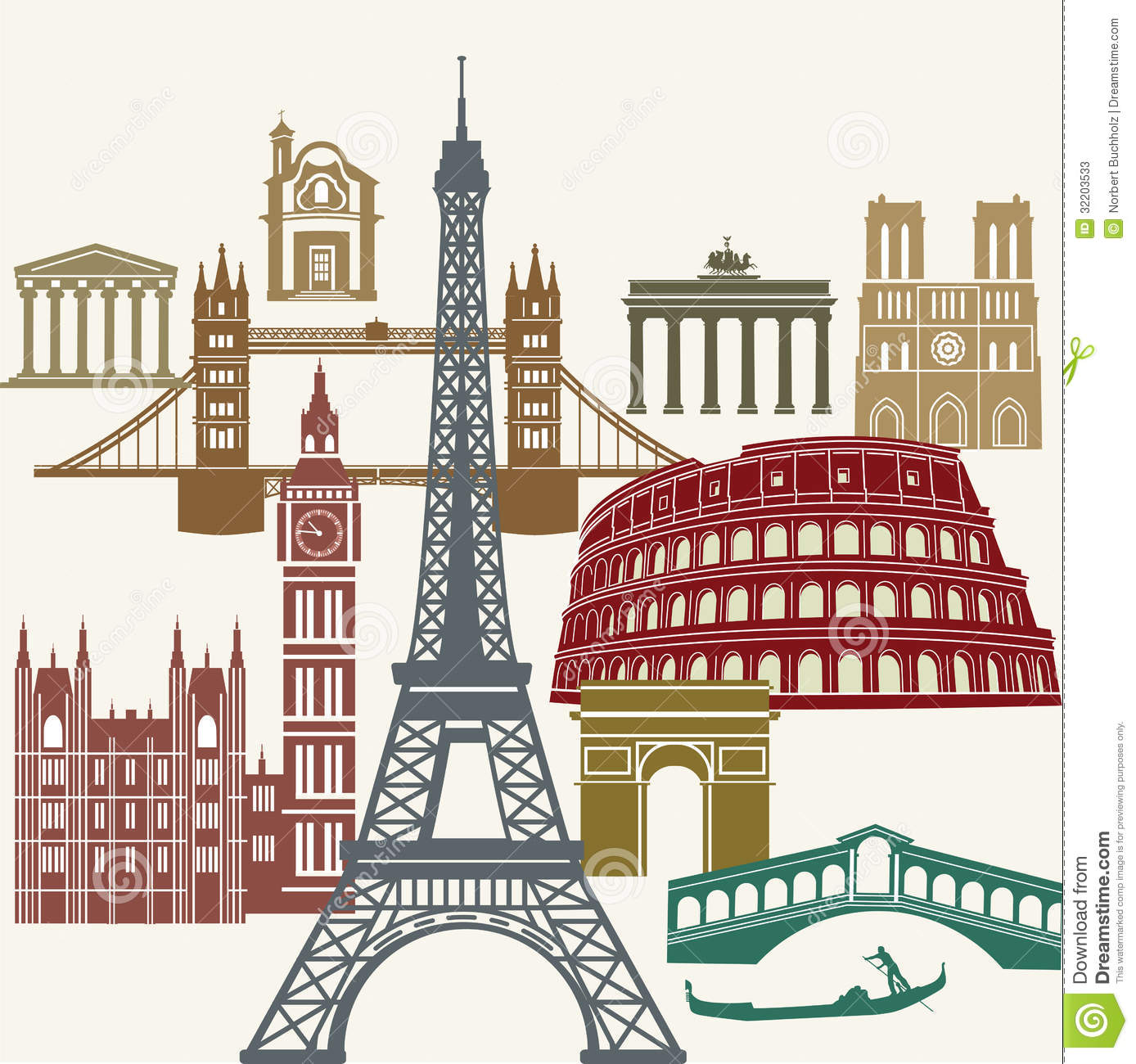 European clipart: Famous European landmarks