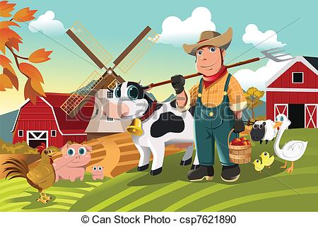 Ranch clipart: Farmer at the farm with