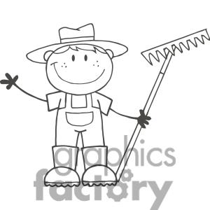 Farmer clipart: farmer boy holding a rake