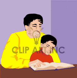 Father clipart: father and son reading a