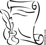 Pen and paper clipart: feather pen with paper