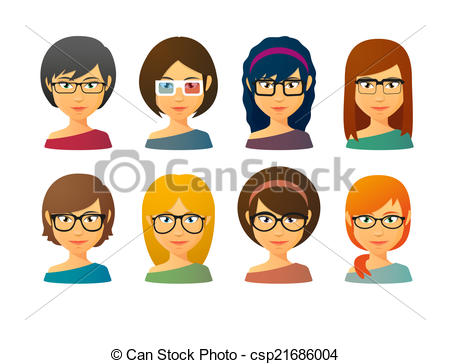 Avatars clipart: Female avatars wearing glasses