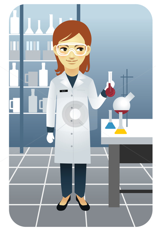 Researcher clipart: Female researcher working in