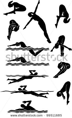 Swimming pool vector: Female Swimming and Diving