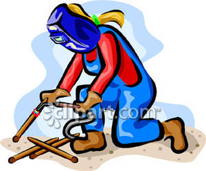 Welder clipart: Female Welder Torching Pipes