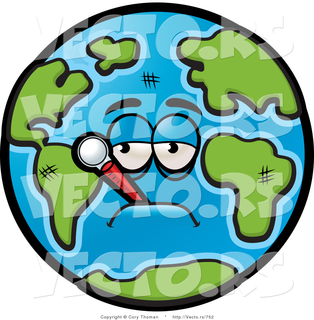 Sick thermometer cartoon: Feverish Cartoon Earth with
