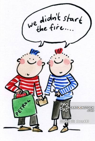 Cartoon hut on fire: Fire Starter cartoon 4 of 7